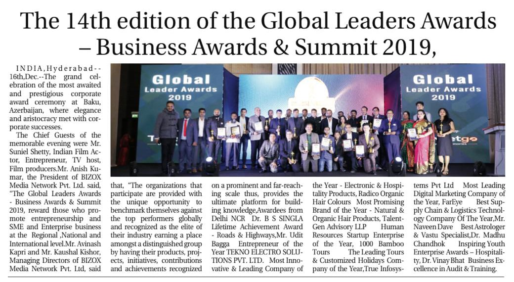 Suyasha Reddy Foundation has been awarded for its excellent work in the Nonprofit category under the Non-Profit Organizations industry in the Business Award & Summit ceremony held in Baku, Azerbaijan, 15th to 18th November 2019.